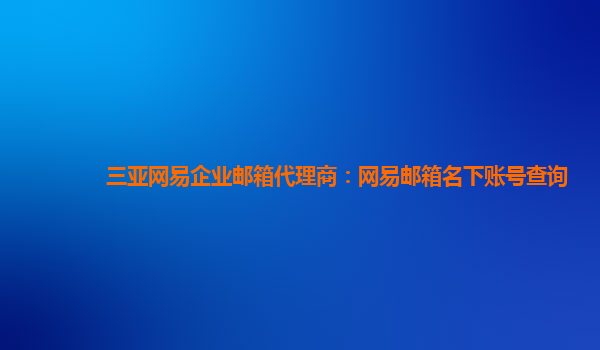 2024-06-12三亚网易企业邮箱代理商:网易邮箱名下账号查询 引言 随着互联网的发展,企业在日常工作中离不开电子邮件的沟通。而网易企业邮箱作为一款稳定、安全、便捷的企业邮箱服务,受到了广大企业用户的青睐。在三...
