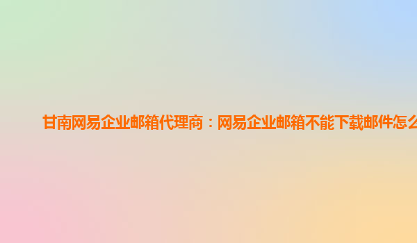 2024-06-12嘉峪关网易企业邮箱代理商:网易企业邮箱不能下载邮件怎么回事 引言:作为一家专业的企业邮箱服务提供商,网易企业邮箱在市场上有着很好的口碑和信誉。然而,有时候用户在使用过程中可能会遇到一些问题,比如无法下...
