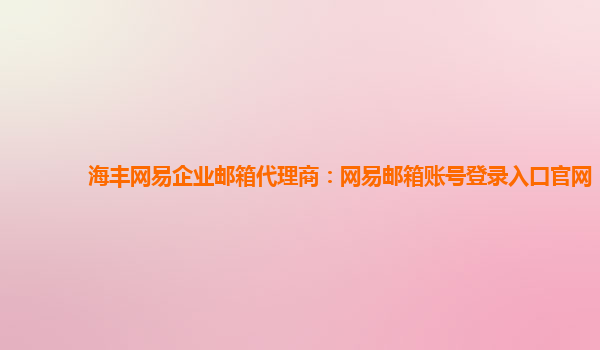 海丰网易企业邮箱代理商:网易邮箱账号登录入口官网 作为一家专业的网易企业邮箱代理商,我们为您提供稳定可靠的企业邮箱产品和优质的服务。通过我们提供的网易邮箱账号登录入口官网,您可以轻松管理您的企业邮箱,...
