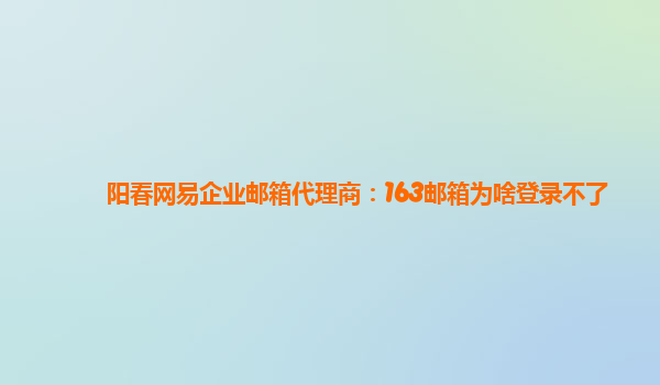 2024-06-12阳春网易企业邮箱代理商:163邮箱为啥登录不了 随着互联网的发展,企业对于邮箱的需求也日益增加。网易企业邮箱作为国内领先的企业邮箱服务商之一,拥有稳定可靠的服务器和完善的功能,受到了众多企业的青...