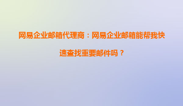 2025-10-10网易企业邮箱代理商:网易企业邮箱能帮我快速查找重要邮件吗? 一、企业邮箱的核心痛点:如何高效查找邮件? 在快节奏的商务沟通中,邮件作为核心工具承载着大...