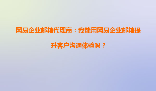 2025-10-09网易企业邮箱代理商:我能用网易企业邮箱提升客户沟通体验吗? 在当今数字化商业环境中,高效的客户沟通是企业成功的关键因素之一。作为网易企业邮箱的代理商,我们经常被客户问到:“使用网易企业邮...