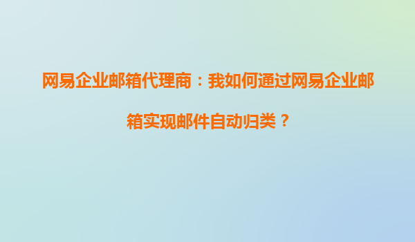 2025-10-10网易企业邮箱代理商:如何通过网易企业邮箱实现邮件自动归类 一、邮件自动归类的价值 在企业管理中,高效的邮件处理能力直接影响团队协作效率。网易企业邮箱提供的自动归类功能,可帮助...