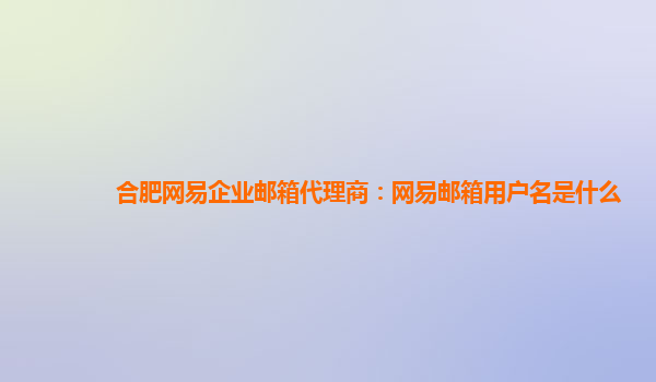 2024-06-12合肥网易企业邮箱代理商:网易邮箱用户名是什么 作为合肥地区的网易企业邮箱代理商,我们经常遇到客户询问关于网易邮箱用户名的问题。网易企业邮箱的用户名通常是用户在注册时所填写的电子邮件地址,也就是用户的邮...