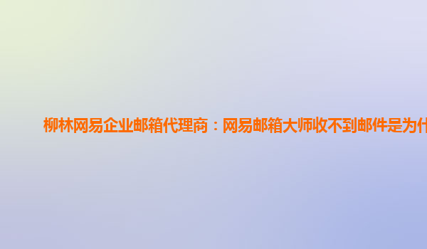 2024-06-12柳林网易企业邮箱代理商:网易邮箱大师收不到邮件是为什么 作为柳林地区的网易企业邮箱代理商,我们经常会接到用户反馈,称他们使用网易邮箱大师时无法收到邮件的问题。那么,为什么会出现这种情况呢?下面我们将结...