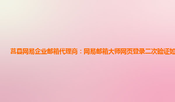2024-06-12莒县网易企业邮箱代理商:网易邮箱大师网页登录二次验证如何解决 网易企业邮箱优势: 1.稳定可靠:网易企业邮箱作为国内领先的企业级邮箱服务提供商,拥有强大的技术支持和稳定的服务器,保障企业邮箱的稳定运行。...