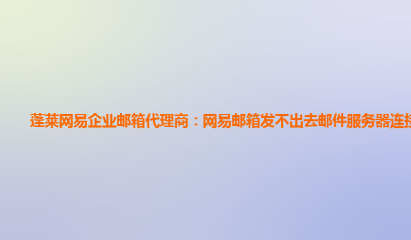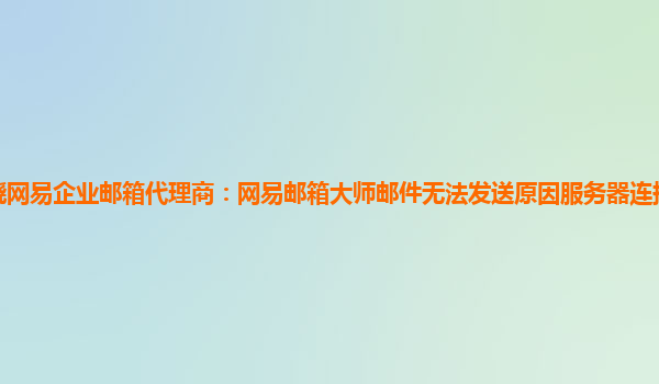 2024-06-12蓬莱网易企业邮箱代理商:网易邮箱发不出去邮件服务器连接失败 作为蓬莱网易企业邮箱代理商,我们深知网易企业邮箱的优势和特点。在使用过程中,有时候会遇到发不出去邮件,邮件服务器连接失败的问题。下面我们来分...