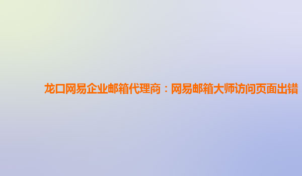 2024-06-12龙口网易企业邮箱代理商:网易邮箱大师访问页面出错 近日,龙口网易企业邮箱代理商接到多位客户反映,他们在使用网易邮箱大师时出现访问页面出错的情况。针对这一问题,我们对网易企业邮箱和网易企业邮箱代理商的优...