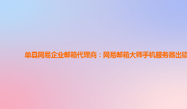 网易企业邮箱优势及好用之处 稳定可靠的服务器 作为单县网易企业邮箱代理商,网易邮箱大师手机服务器出错的情况非常少见。网易企业邮箱采用了先进的云端技术,保障用户的邮件服务稳定可靠。即使在高峰时段,...