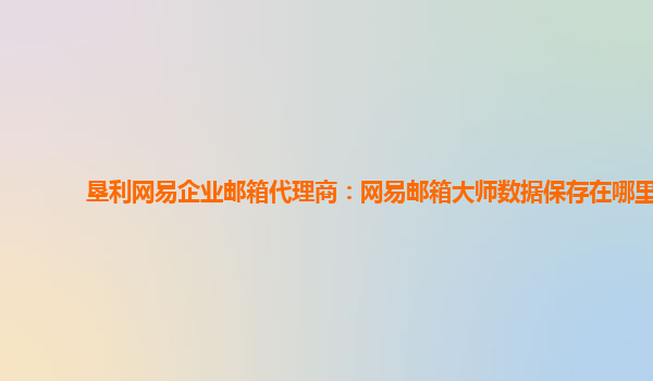 2024-06-12垦利网易企业邮箱代理商:网易邮箱大师数据保存在哪里 作为一家专业的垦利网易企业邮箱代理商,我们经常被客户询问一个问题:网易邮箱大师的数据保存在哪里?今天,我们就来解答这个问题。 数据保存在安全可靠的云...