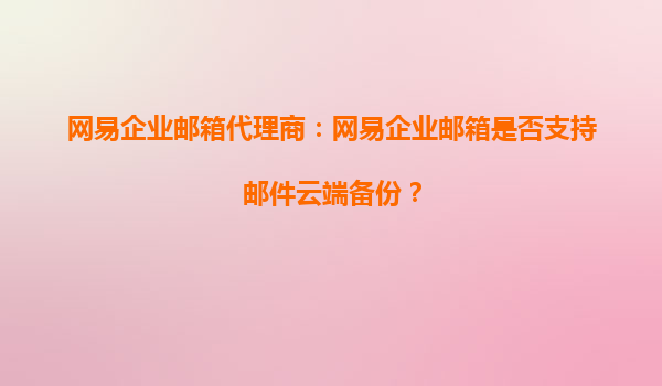 网易企业邮箱代理商解析:网易企业邮箱是否支持邮件云端备份? 一、网易企业邮箱的云端备份功能 网易企业邮箱作为国内领先的企业级邮件服务提供商,其核心功能...