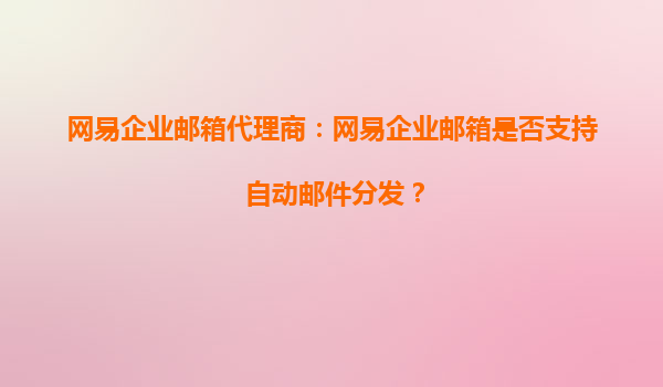 2025-10-05网易企业邮箱代理商:网易企业邮箱是否支持自动邮件分发? 在当今快节奏的商业环境中,企业邮箱不仅是沟通的工具,更是提升工作效率的重要平台。作为国内领先的企业邮箱服务提供商,网易企业邮箱凭借其强大的功...