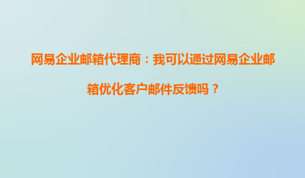 2025-10-05网易企业邮箱代理商:我可以通过网易企业邮箱优化客户邮件反馈吗? 一、网易企业邮箱的核心优势 网易企业邮箱作为国内领先的企业级邮件服务提供商,凭借其稳定的系统架构、高效的邮件处理能力以及丰富的功...
