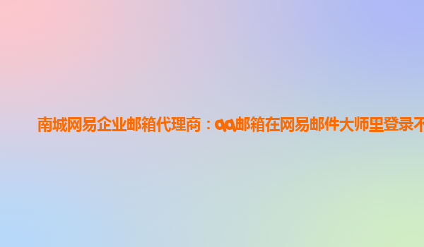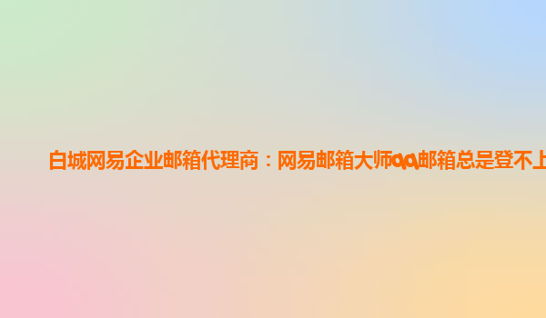 网易企业邮箱代理商:网易邮箱大师qq邮箱总是登不上去 随着互联网的迅速发展,电子邮件已经成为人们日常工作中必不可少的通讯工具。而在众多邮件服务提供商中,网易企业邮箱因其稳定性和安全性备受用户青睐。作为白...