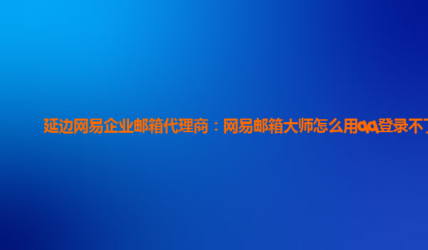 2024-06-12长春网易企业邮箱代理商:网易邮箱大师怎么用qq登录游戏 作为长春地区的网易企业邮箱代理商,我们经常接触到网易企业邮箱的客户。其中,网易邮箱大师是一个非常实用的工具,可以帮助用户快速登录各种应用程序,包括...