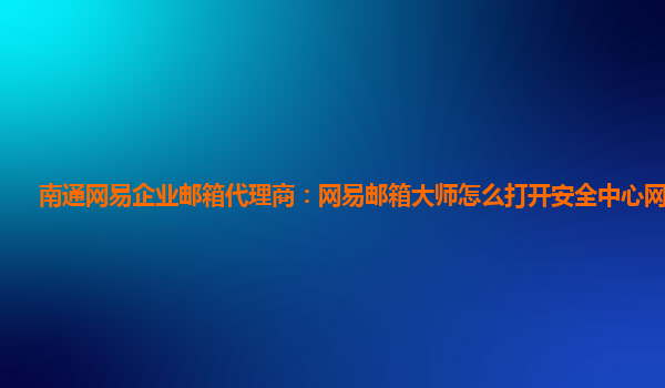 2024-06-12南通网易企业邮箱代理商:网易邮箱大师怎么打开安全中心网页链接 作为南通地区的网易企业邮箱代理商,我们经常接触到客户对于网易邮箱大师安全中心的疑问。今天我们就来详细介绍一下如何打开网易邮箱大师的安全中心...