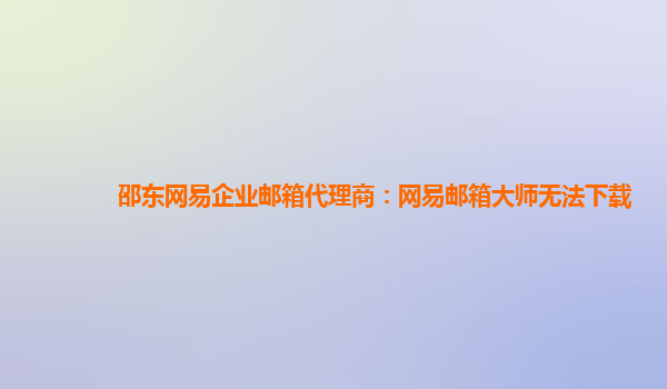 2024-06-12邵东网易企业邮箱代理商:网易邮箱大师无法下载 随着互联网的快速发展,电子邮件已经成为现代企业沟通的重要工具之一。网易企业邮箱作为国内领先的企业级邮箱服务提供商,拥有稳定可靠的服务器和安全高效的系统,受...