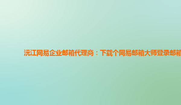 2024-06-12沅江网易企业邮箱代理商:下载个网易邮箱大师登录邮箱 网易企业邮箱是一款专为企业用户打造的邮箱服务,提供全面的邮箱解决方案,适用于各种规模的企业。作为沅江网易企业邮箱代理商,我们推荐您下载网易邮箱大师,...