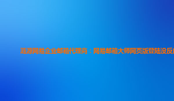 涟源网易企业邮箱代理商:网易邮箱大师网页版登陆没反应 优势分析: 作为涟源地区的网易企业邮箱代理商,我们深知网易企业邮箱的诸多优势。首先,网易企业邮箱拥有稳定可靠的服务,保障用户的邮件正常收发;其次,...