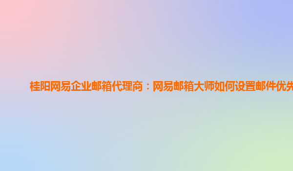 2024-06-12网易企业邮箱代理商:网易邮箱大师如何设置邮件优先级 随着互联网的发展,电子邮件已经成为人们生活和工作中不可或缺的重要工具。网易企业邮箱作为国内领先的企业邮箱服务商,其强大的功能和稳定的性能受到了广大用...