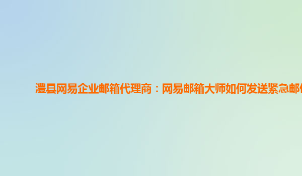 2024-06-12澧县网易企业邮箱代理商:网易邮箱大师如何发送紧急邮件 作为澧县网易企业邮箱代理商,我们经常接到客户咨询如何在紧急情况下发送邮件的问题。网易企业邮箱大师是一款功能强大的企业邮箱服务工具,它不仅提...