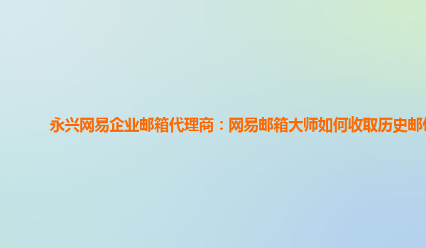 2024-06-12永兴网易企业邮箱代理商:网易邮箱大师如何收取历史邮件 作为永兴网易企业邮箱代理商,我们推荐使用网易邮箱大师来管理企业邮箱,其中一个重要功能就是如何收取历史邮件。下面我们将详细介绍这个过程。 步骤一:登...