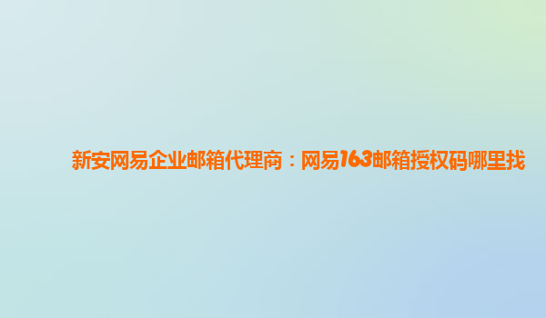 2024-06-12新安网易企业邮箱代理商:网易163邮箱授权码哪里找(分析与解答) 作为新安网易企业邮箱的代理商,我们致力于提供全面详尽的信息和解答各类问题,其中一项就是关于网易163邮箱授权码的获取。 什么是网...