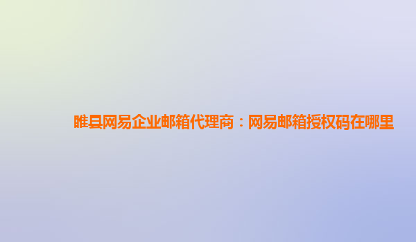 2024-06-12睢县网易企业邮箱代理商:网易邮箱授权码在哪里 网易企业邮箱是一种功能强大的电子邮件服务,可以帮助企业提高工作效率和管理能力。也就是,企业可以通过使用网易企业邮箱,进行各种信息交流、文件共享、日程管理...