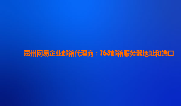 2024-06-11惠州网易企业邮箱代理商:163邮箱服务器地址和端口 作为一家以惠州为基地的网易企业邮箱代理商,我们为众多企业提供了专业的邮件服务。我们的服务不仅在惠州,而且遍及全国。之所以能够获得如此广泛的认可,一方面...