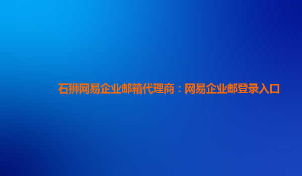 2024-06-11石狮网易企业邮箱代理商:网易企业邮登录入口 网易企业邮箱是网易为企事业用户推出的一款全新升级的高端电子邮件产品。作为石狮网易企业邮箱代理商,我们提供方便快捷的网易企业邮登录入口,让您可以随时随地查阅和...