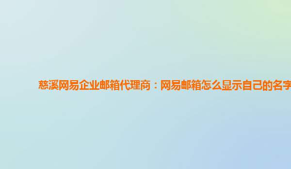 2024-06-11长兴网易企业邮箱代理商:网易邮箱怎么改名字和昵称 在当前的信息环境中,电子邮件已经成为我们日常工作中不可或缺的一部分。而长兴网易企业邮箱代理商多年来一直致力于为用户提供优秀的网络服务,尤其是在网易...