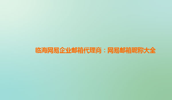 临海网易企业邮箱代理商:网易邮箱昵称大全 网易企业邮箱是一种专门针对企业群体提供的邮箱服务,由中国知名互联网公司网易开发和运营。企业使用网易企业邮箱,可以有自己独立的域名,给自己的客户留下更专业、...