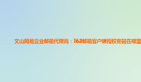 文山网易企业邮箱代理商:163邮箱客户端授权密码在哪里 在当今的信息化社会中,电子邮件已经成为了工作生活中不可缺少的一部分。对企业来说,一个高效、安全、稳定的企业邮箱系统能够有效提升公司的工作效率,并保...