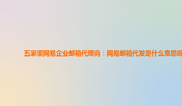 五家渠网易企业邮箱代理商:解析网易邮箱代发的含义与优势 什么是网易企业邮箱代发 在现代化的信息时代,电子邮件成为了人们日常工作中不可或缺的重要工具。而在众多邮箱服务商中,网易企业邮箱因其稳定、安全和便...