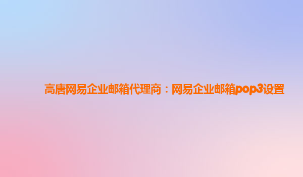 2024-06-11高唐网易企业邮箱代理商:网易企业邮箱POP3设置 在当今网络信息化的时代,一份舒适的工作氛围和良好的信息流通是提高工作效率的前提。而电子邮件作为一种常用且重要的信息传输方式,相比于普通邮件,无疑具有更高...