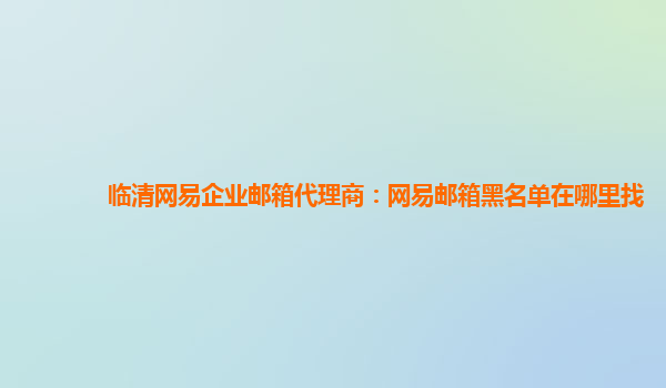 临清网易企业邮箱代理商:网易邮箱黑名单在哪里找 作为一个知名的互联网公司,网易一直致力于为用户提供高质量的产品和服务。其中,网易企业邮箱就是一种受到广泛欢迎的产品。这款产品以其稳定、安全、高效的特点,...