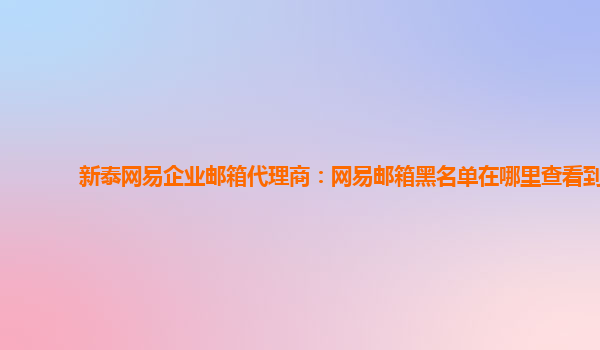 2024-06-11邹城网易企业邮箱代理商:网易邮箱APP黑名单在哪 网易企业邮箱是目前全国范围内被广泛使用的邮箱服务之一,由于其强大的功能以及优质的用户体验,赢得了众多企业用户的青睐。特别是我们邹城网易企业邮箱代理商,长...