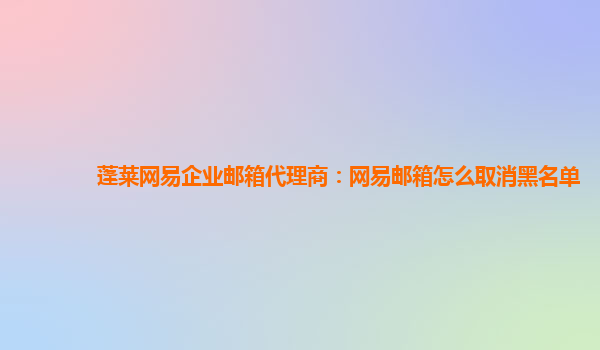 2024-06-11``` 蓬莱网易企业邮箱代理商:网易邮箱怎么取消黑名单 在现代商业活动中,邮件已经成为了商务沟通的重要方式之一。一直以来,网易企业邮箱以其强大的功能和优秀的服务,被广大企业用户所喜爱和认可。它具有稳定性...