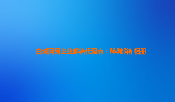 2024-06-11延边网易企业邮箱代理商:163网易免费邮箱相册怎么删除 首先,让我向大家介绍一下我们延边的网易企业邮箱代理商,我们是专门为企业提供稳定、安全、高效的邮件服务。网易163企业邮箱在国内有着极高的市场占有率,无...