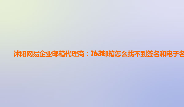 2024-06-11163邮箱:沭阳网易企业邮箱代理商的签名和电子名片功能 网易企业邮箱已成为众多企业沟通协作的主力工具,其中涵盖了各种实用且高效的功能。然而,许多用户在使用过程中会遇到一些小问题,例如找不到签名和电子名片这...