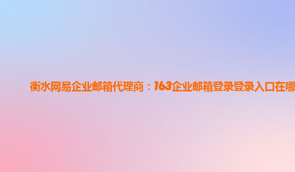 2024-06-11衡水网易企业邮箱代理商:163企业邮箱登录登录入口在哪 作为一款专业企业邮箱服务,网易企业邮箱拥有诸多优势。以下我们将结合网易企业邮箱和网易企业邮箱代理商的优势进行详细介绍。 网易企业邮箱的优势 1.稳定...