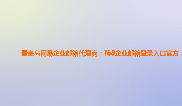 秦皇岛网易企业邮箱代理商:163企业邮箱登录入口官方 随着信息技术的高速发展,企业对于邮箱服务的需求也越来越高。而网易企业邮箱则成为了很多企业的首选之一。本文将介绍网易企业邮箱的优势,并提供登录入口官方...