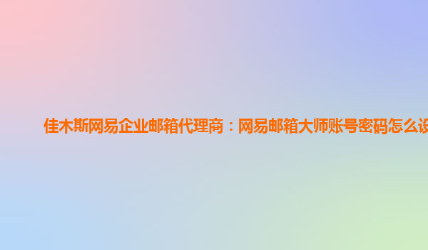 2024-03-15网易企业邮箱代理商:网易邮箱大师账号密码怎么设置 作为企业邮箱服务的重要组成部分,邮箱大师对于企业用户来说非常重要。网易企业邮箱代理商提供了一种便捷的方式,让企业用户可以轻松管理自己的企业邮箱。在使...