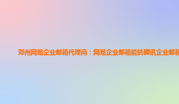 邓州网易企业邮箱代理商:网易企业邮箱能转腾讯企业邮箱吗 网易企业邮箱的优势 作为国内领先的企业级邮件服务提供商,网易企业邮箱具有以下优势: 稳定性强:采用云计算技术,确保邮箱系统24小时稳定运行 安全性...
