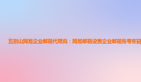2024-03-15网易企业邮箱设置企业邮箱账号密码是什么 作为琼海网易企业邮箱代理商,我们了解和推荐网易企业邮箱的优势,同时也能为您解答一些常见的问题。那么,网易企业邮箱如何设置企业邮箱账号密码呢? 账号密码设置步骤 ...