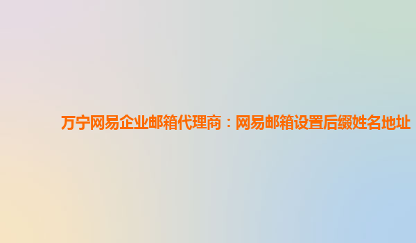 2024-03-15万宁网易企业邮箱代理商:网易邮箱设置后缀姓名地址 随着互联网技术的发展,越来越多的企业开始采用电子邮件进行沟通和管理。而网易企业邮箱以其稳定、安全、可靠的特点,成为了众多企业选择的首选邮箱服务提供商。...