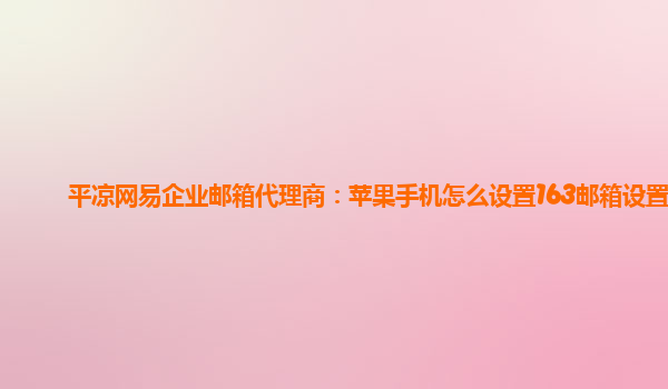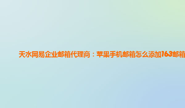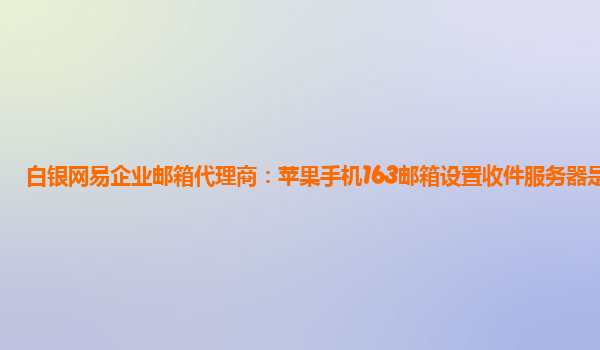 2024-03-15兰州网易企业邮箱代理商:苹果手机设置163邮箱 如果您是一位企业的管理者或职员,那么您肯定会需要一个专业的企业邮箱来方便您的工作沟通和联系。而在众多企业邮箱品牌中,网易企业邮箱无疑是一个极为优秀的选择。 ...