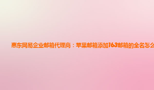 2024-03-15如何在苹果邮箱中添加163企业邮箱 惠东网易企业邮箱代理商提供了多种邮件服务,其中包括常用的163企业邮箱。如果您使用苹果设备,可以轻松地将163企业邮箱添加到苹果的官方邮件应用程序中。以下是如何添加163企业邮...