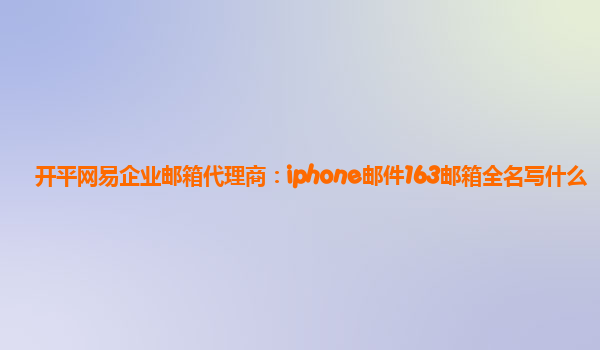 2024-03-15开平网易企业邮箱代理商:iPhone邮件163邮箱全名写什么 随着数字化时代的到来,企业对于电子邮件的需求越来越高。越来越多的企业选择使用网易企业邮箱,因为它具有许多优势。 网易企业邮箱的优势 ...