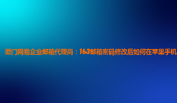 2024-03-15网易企业邮箱密码修改后如何在苹果手机中重置 作为一款功能强大、安全稳定的企业邮箱服务,网易企业邮箱备受用户信赖。不过,有时我们会因为各种原因需要修改邮箱密码,如果你同时在苹果手机上使用网易企业邮箱,那...